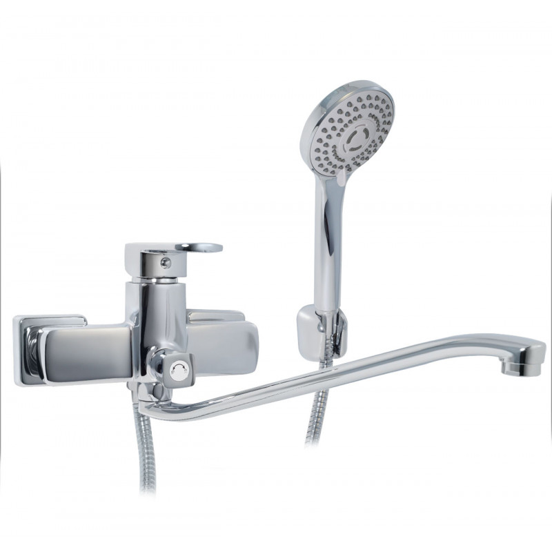 Однорычажный смеситель для ванны. Цвет: хром. Сочетает в себе современные технологии и универсальный современный дизайн. Превосходно дополнит любой интерьер ванной комнаты. Изготовлен из качественного цинка по технологии литья в песчаную форму. Полировка и последующая гальванизация смесителя делает его поверхность максимально крепкой, защищает изделие от воздействий внешней среды и механических повреждений. Керамический картридж 35 мм обеспечивает точную настройку температуры и напора воды. Излив с поворотом на 360 градусов. Аэратор из пластика с функцией легкой очистки. Душевая лейка с настенным держателем и защитой от известковых отложений. Душевой шланг в металлической оплетке длиной 1,5 м. Переключатель душ/излив с керамическими пластинами. Стандарт подключения: G 1/2. Монтаж: на стену. В комплекте поставки: смеситель для ванны, эксцентрики с отражателями, лейка, шланг, держатель.