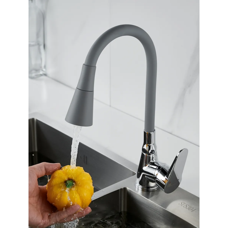 Смеситель кухня шар. гибкий гусак серый Батфор 2622 СN