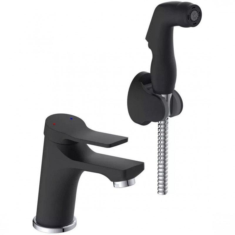 Смеситель умывальника шар. Потато P12292BL черный с гигиеническим душем и шлангом