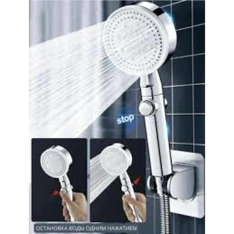 Душевой комплект. Лейка, шланг, кронштейн. Такой душ удобно закрепить на стене. Усиленная душевая система для слабого напора воды.лейка 5 режимов, шланг длиной 2 м, кронштейн